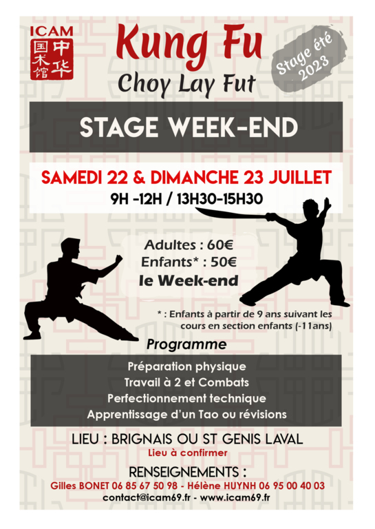 Inscription en ligne : https://www.helloasso.com/associations/institut-chinois-d-arts-martiaux-st-genis-laval/evenements/stage-ete-week-end-22-23-juillet